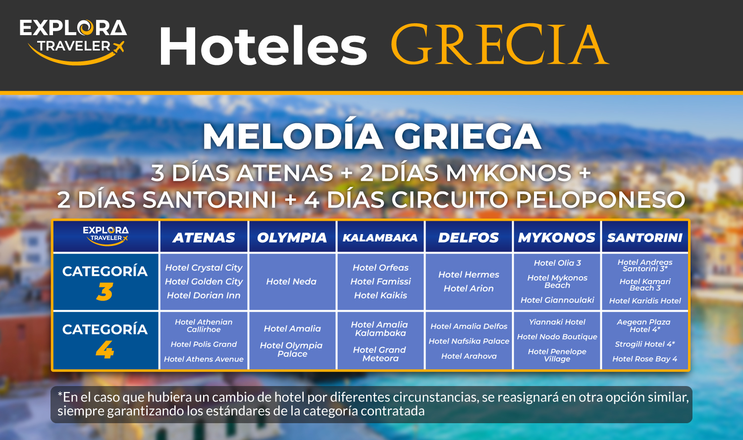 "MELODIA GREIGA" 3 DIAS ATENAS + 2 DIAS MYKONOS + 2 DIAS SANTORINI + 4 DIAS CIRCUITO PELOPONESO