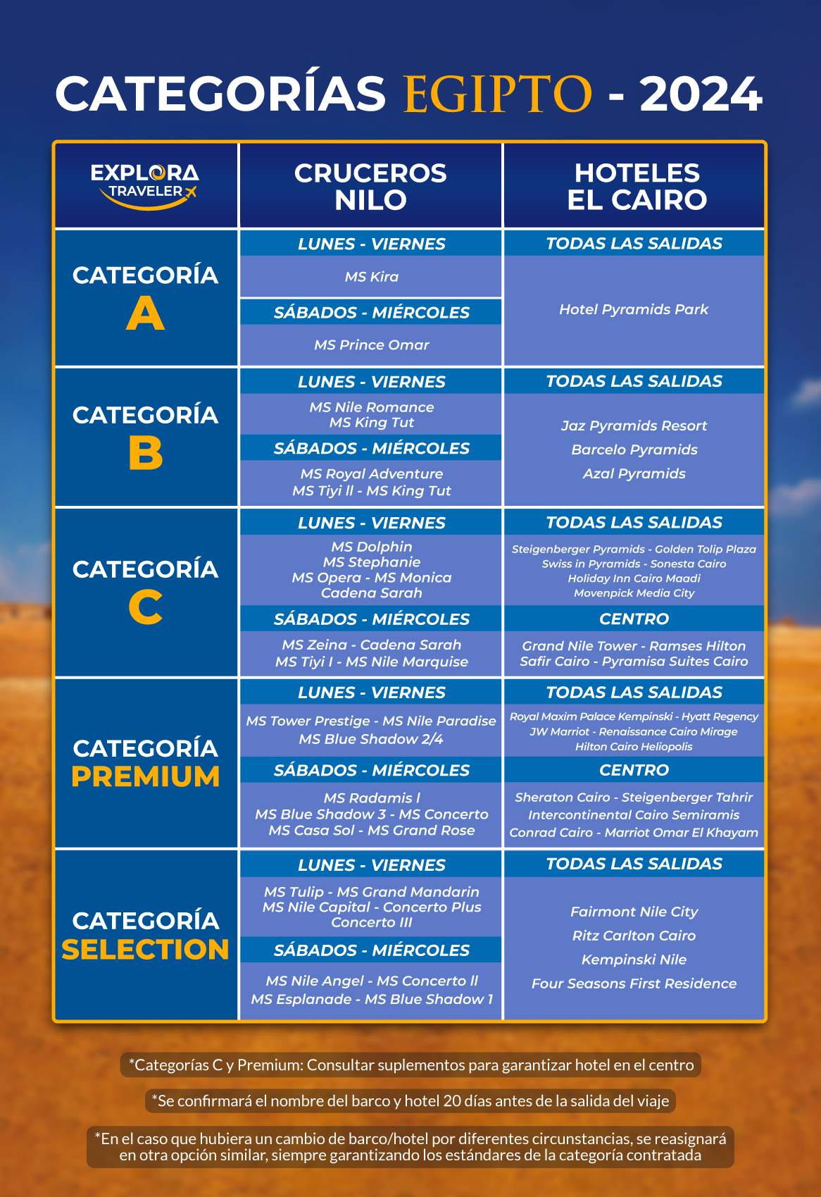 - La salida de los viernes siempre es 3 Noches Crucero + 4 noches en El Cairo.